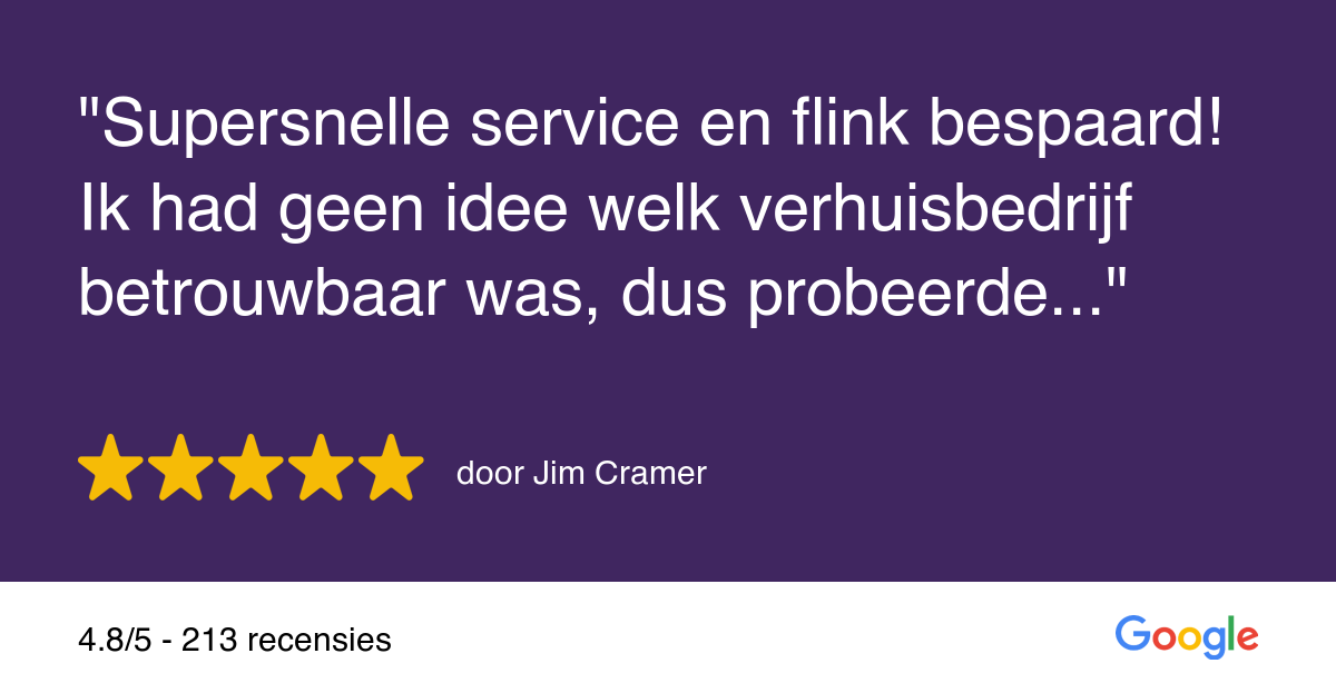 Tijdens de verhuizing had ik nergens omkijken naar. Ze namen echt alles uit handen, van planning tot sjouwen. Daardoor kon ik me volledig focussen op mijn nieuwe woning en toekomst. Echt top geregeld!